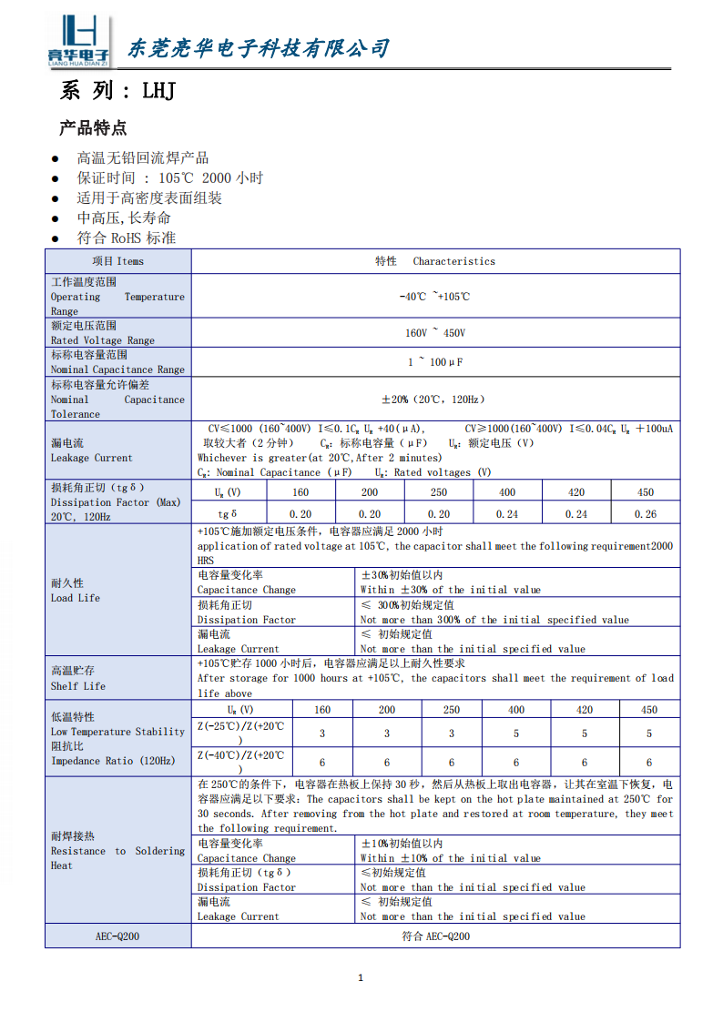 Guaranteed time :105℃ 2000 hours