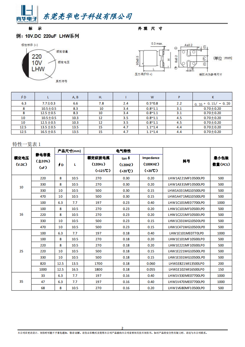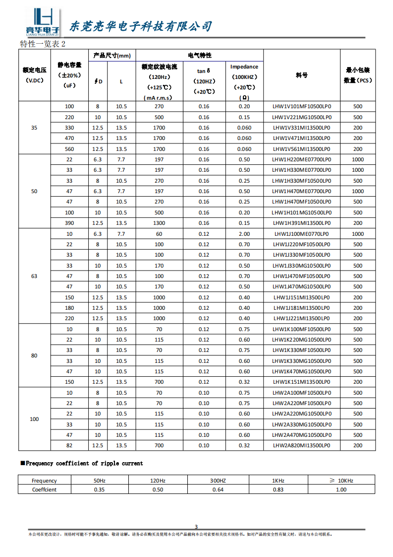 Guarantee time :125℃ 2000~3000 hours