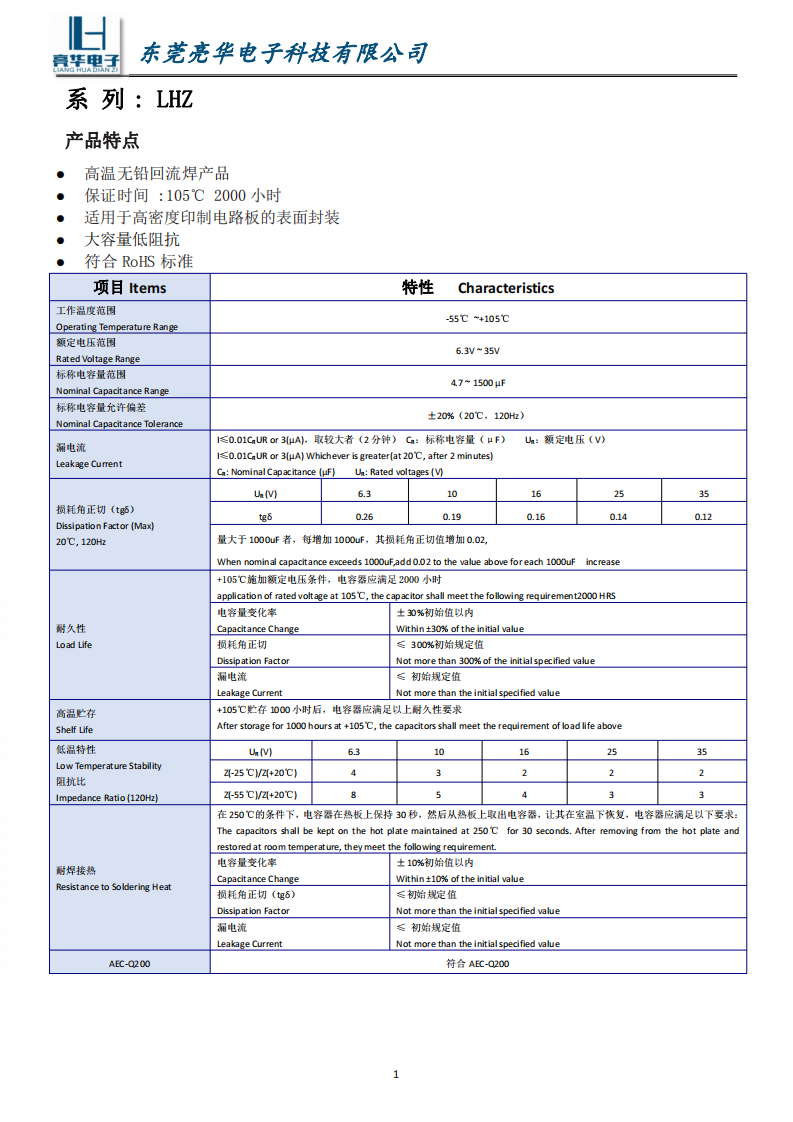 Guaranteed time :105℃ 2000 hours