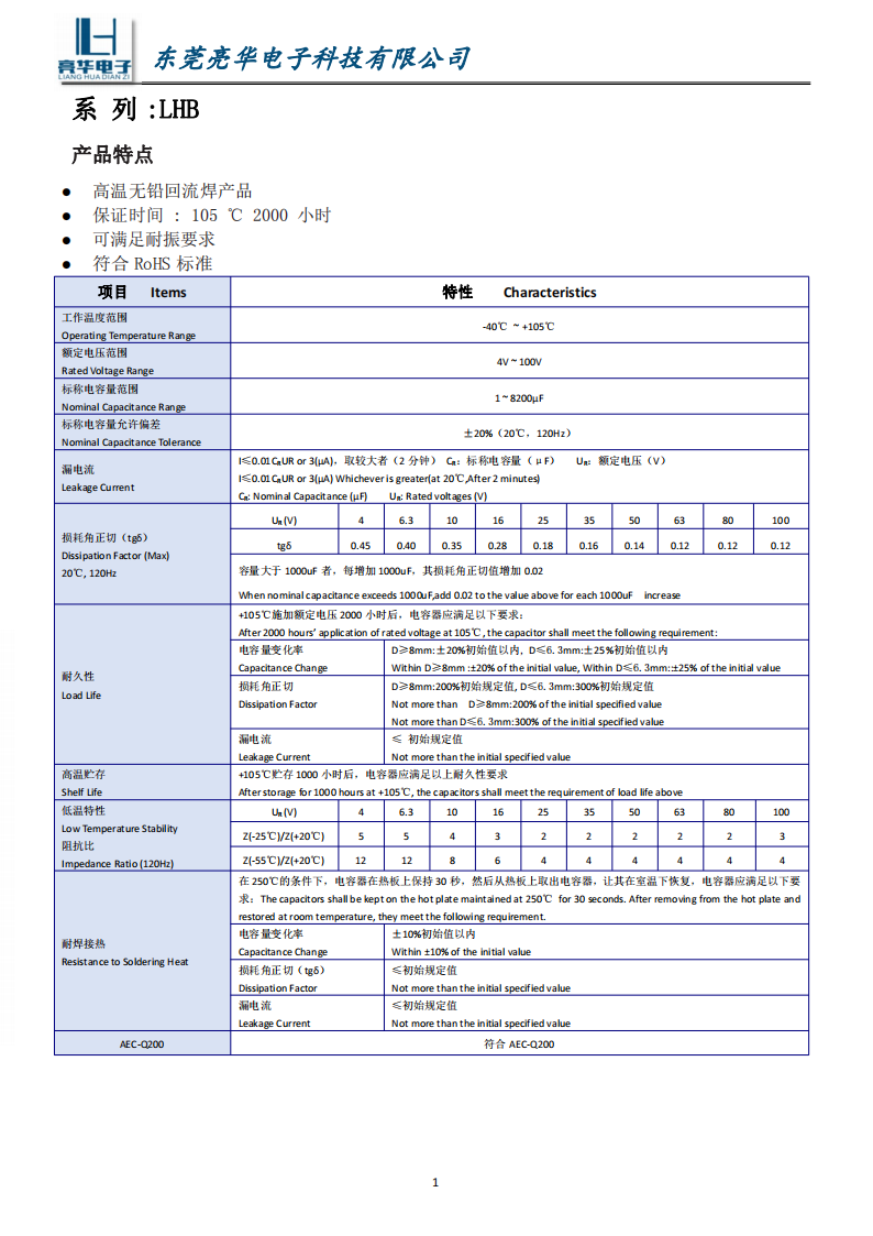 Guaranteed time: 105 ℃ 2000 hours