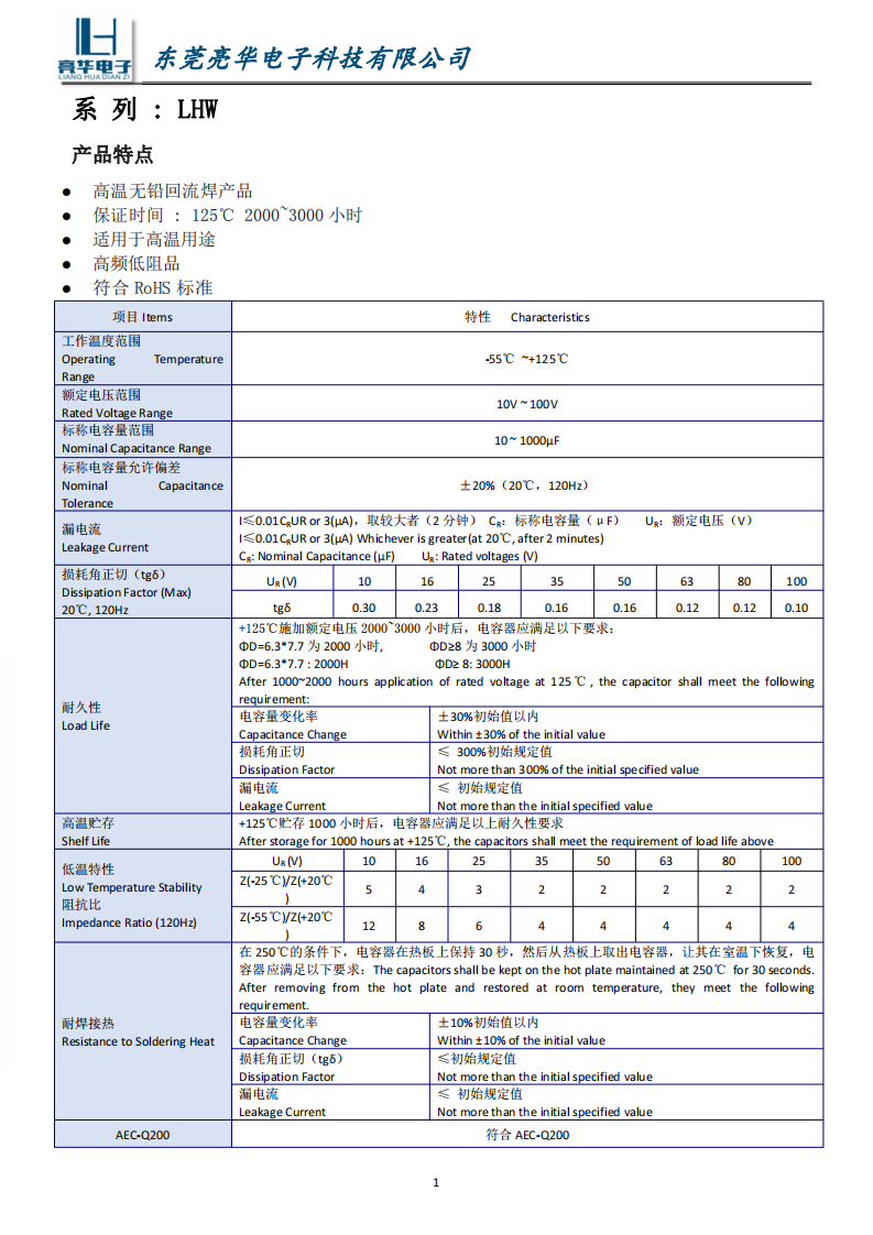 Guarantee time :125℃ 2000~3000 hours