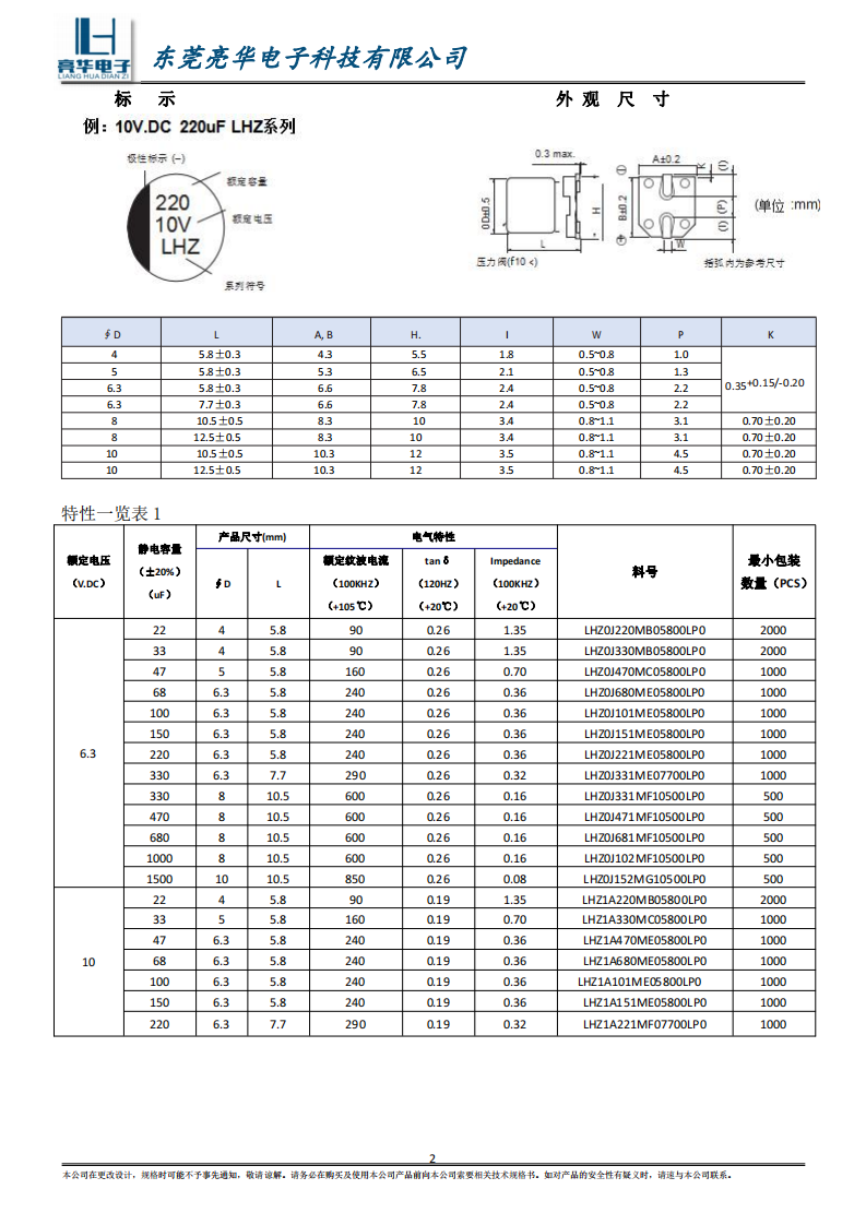 Guaranteed time :105℃ 2000 hours