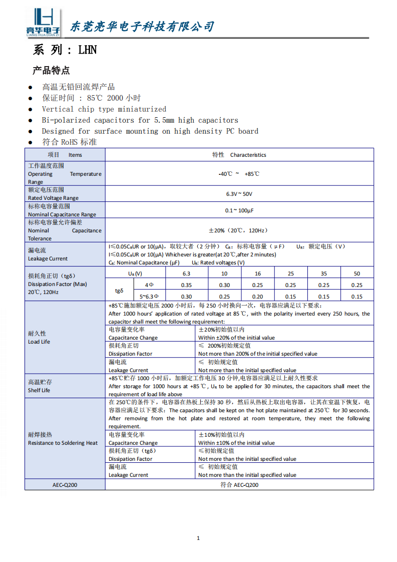 • 保证时间:85℃ 2000小时